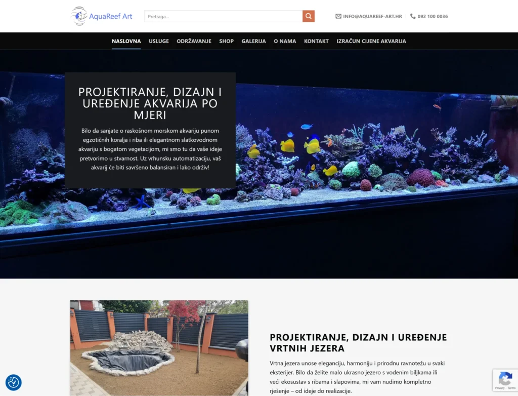 Web stranica za klijenta koji projektira i izrađuje akvarije po mjeri, od manjih kućnih modela do velikih instalacija.