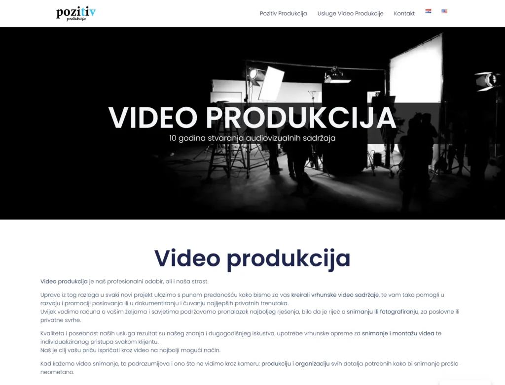 Web stranica za produkcijsku kuću specijaliziranu za TV produkciju, streaming i digitalni sadržaj.